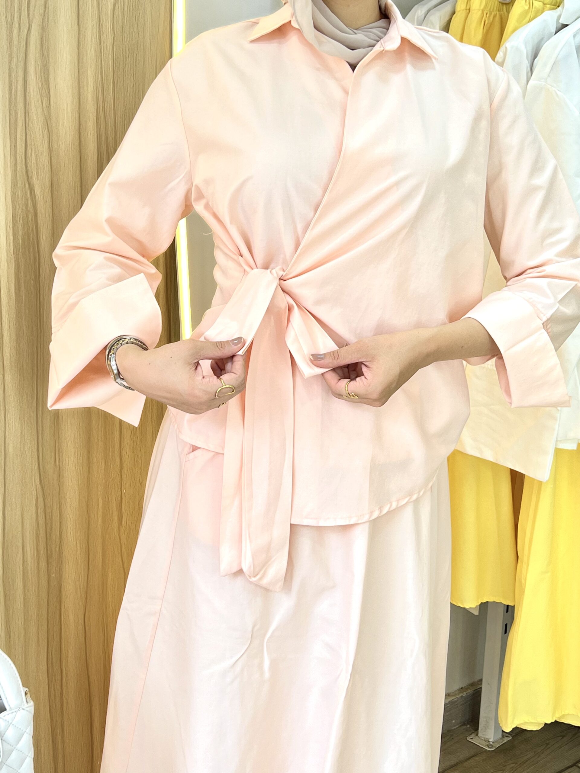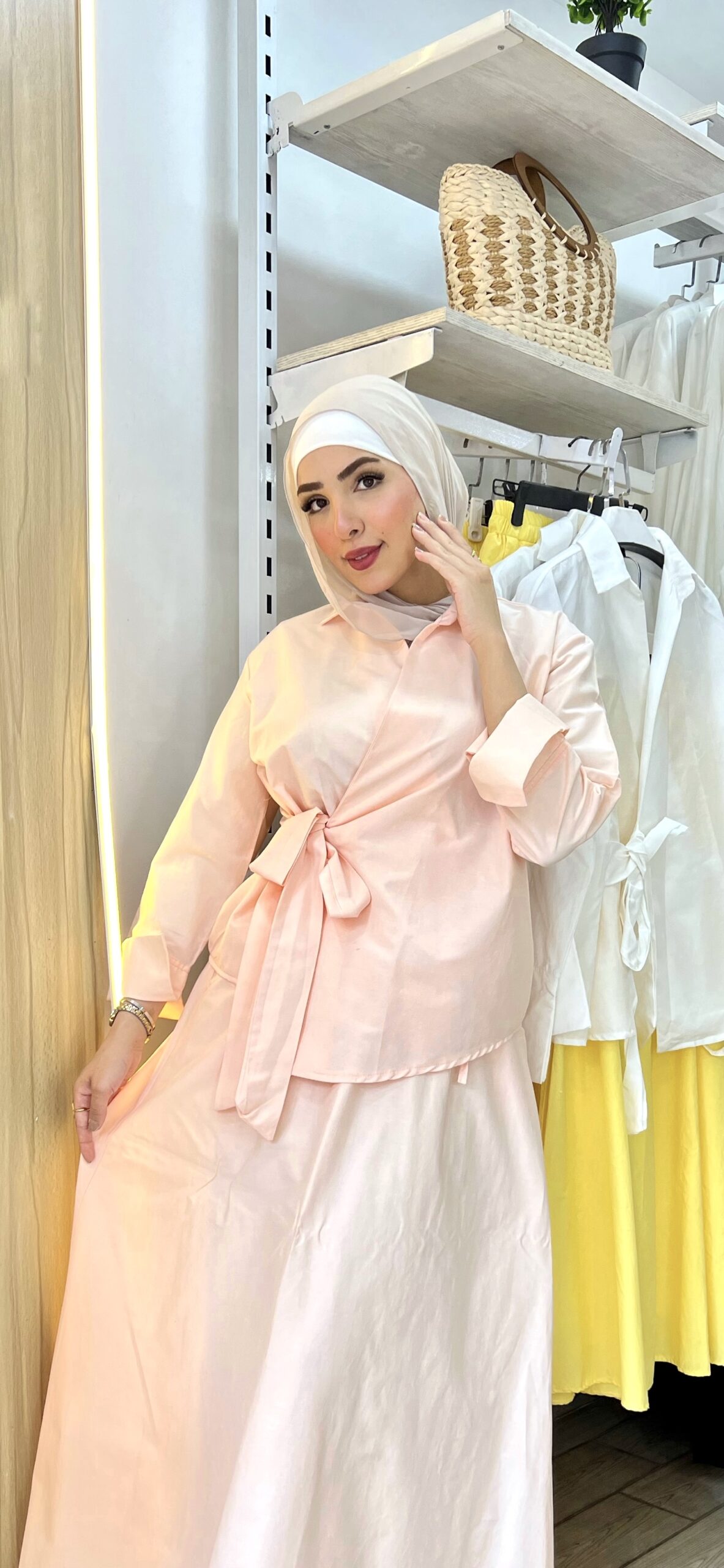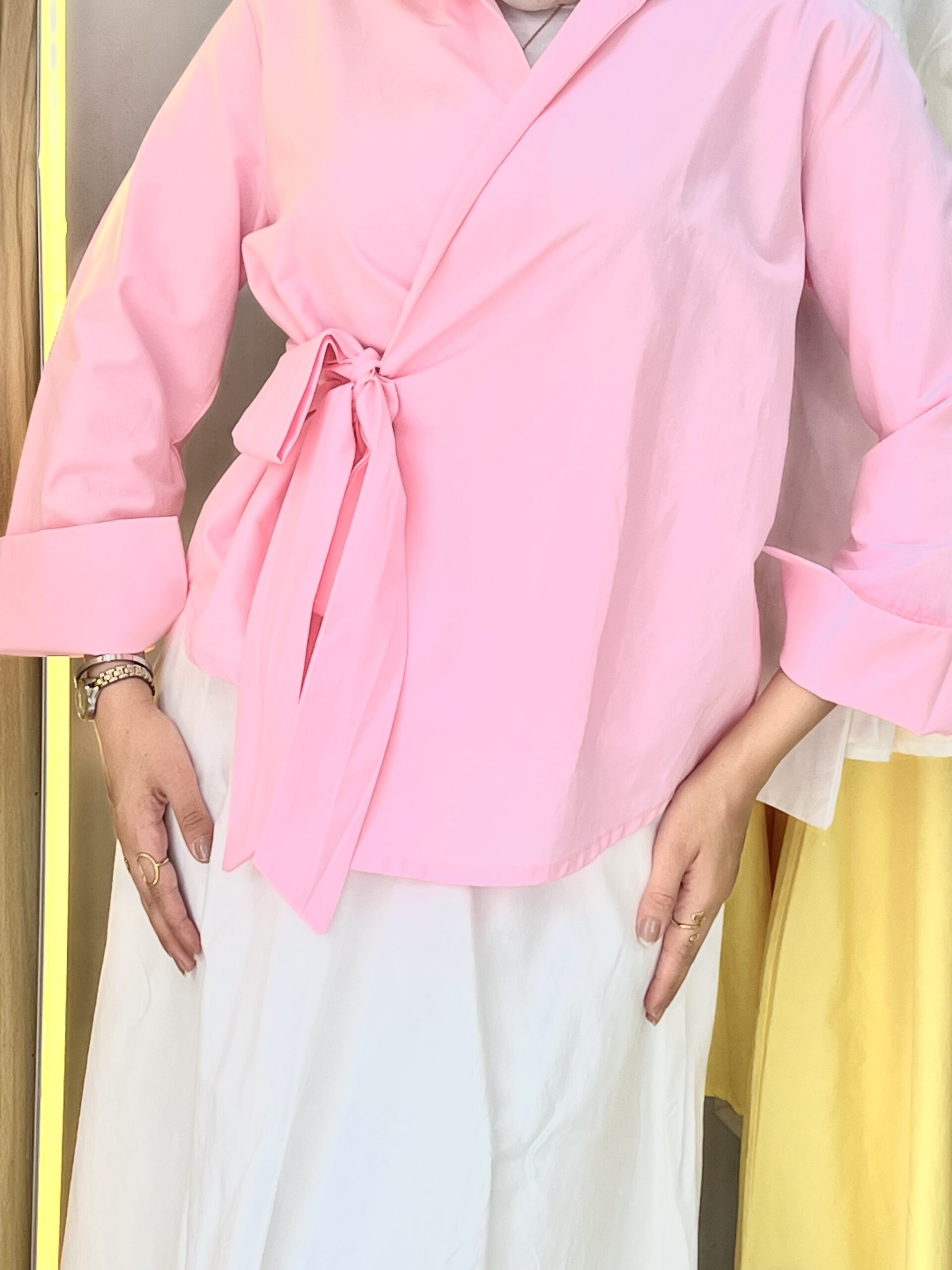 بلوزة كروازية أنيقة مصنوعة من خامة قطن مريحة وناعمة على البشرة، بتصميم عملي يناسب إطلالاتك اليومية سواء في الشغل أو الخروجات.
