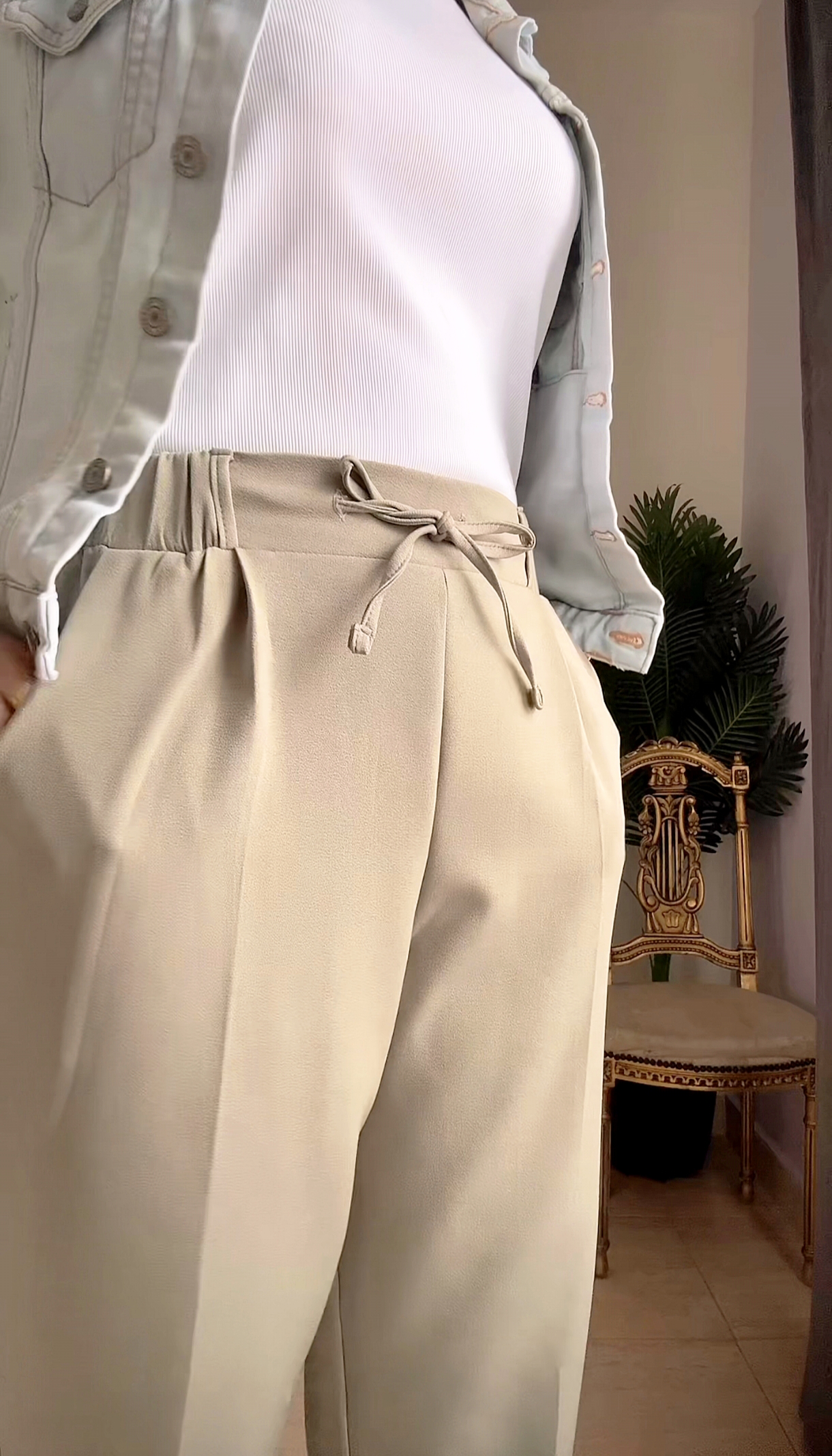 التصميم: مزود برباط عند الخصر ليمنحكِ تحكماً كاملاً في المقاس، مما يجمع بين الأناقة الرسمية وراحة الملابس الكاجوال.